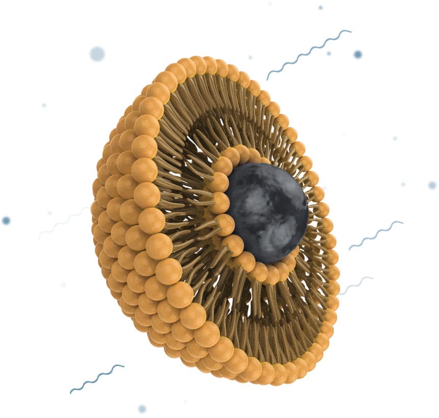 Liposomes are lipid molecules. Think of them as tiny bubbles made out of the same material as cell membranes. They've been proven to be highly efficient in delivering drugs and nutrients to where they need to go within the body.